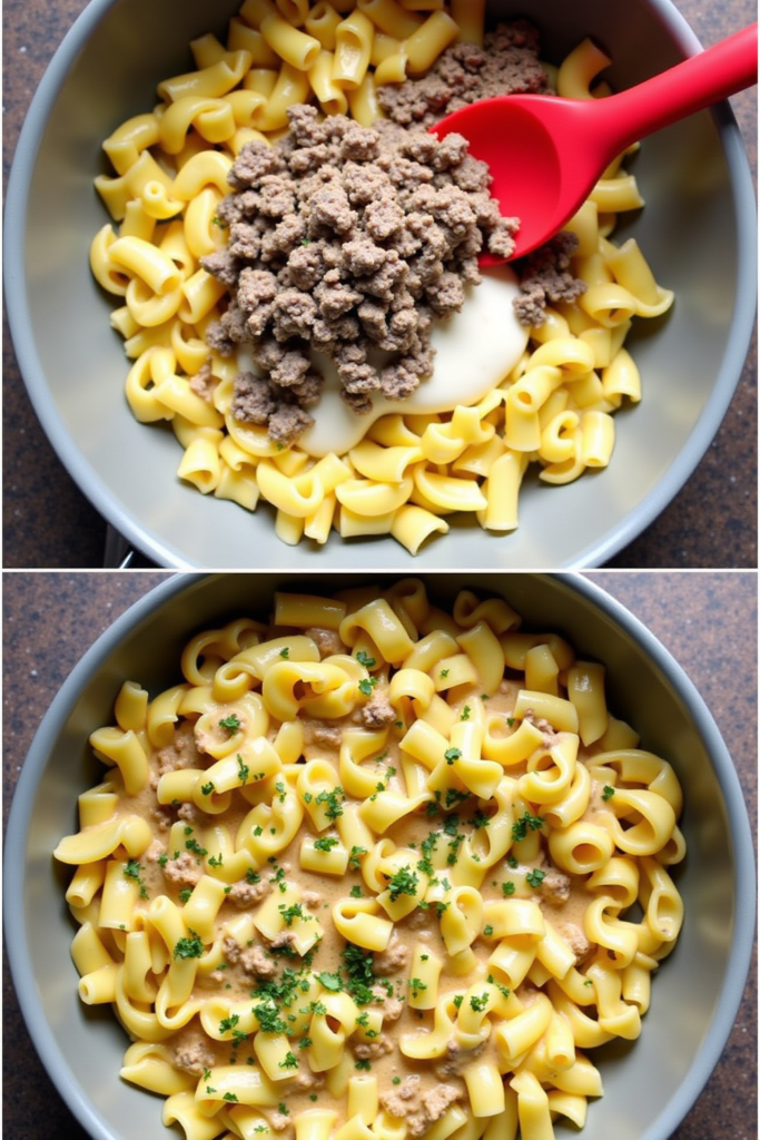 The key to an unforgettable stroganoff is the sauce. This version uses a base of sautéed onions and mushrooms, deglazed with beef broth, and finished with sour cream for that signature tang and creaminess. Stir in a splash of Worcestershire sauce and a dash of paprika for depth. The result is a sauce that’s rich, smooth, and packed with savory flavor—guaranteed to make every bite memorable.